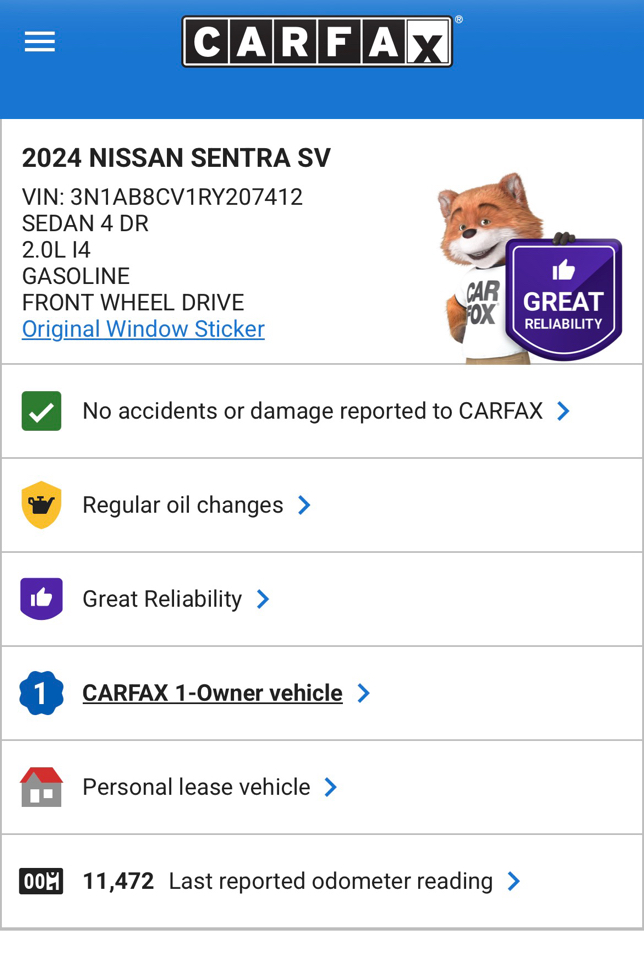 Vehicle Inquiry for 2024 Nissan Sentra SV CVT